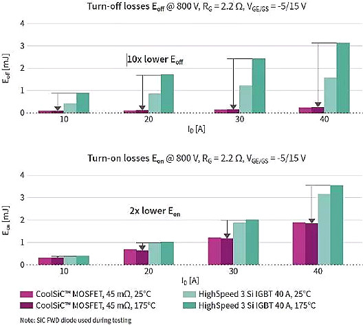 圖1 IGBT與CoolSiCTM開關損耗對比
