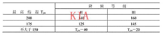 二極管最高結溫的降額,根據二極管相關詳細規范給出的最高結溫Tjmax而定,降額后的最高結溫見表