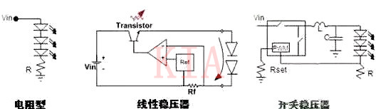 采用DC-DC電源的LED照明應用中,可以采用的LED驅動方式有電阻型、線性穩壓器及開關穩壓器等。