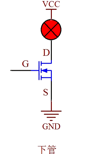 NMOS當下管,即S極(源極)直接接地,只需控制G極(柵極)電壓即可控制NMOS管的導通或截止,因為MOS管導通的條件取決于VGS的壓差。
