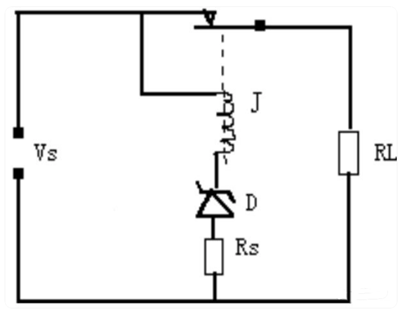 1、浪涌保護電路:穩壓管在準確的電壓下擊穿,這就使得它可作為限制或保護之元件來使用,因為各種電壓的穩壓二極管都可以得到,故對于這種應用特別適宜。穩壓二極管D是作為過壓保護器件。只要電源電壓VS超過二極管的穩壓值D就導通,使繼電器J吸合負載RL就與電源分開。