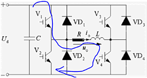 ①給V1和V4開通信號(hào),給V2和V3關(guān)斷信號(hào)