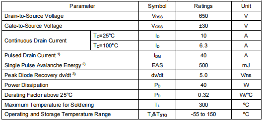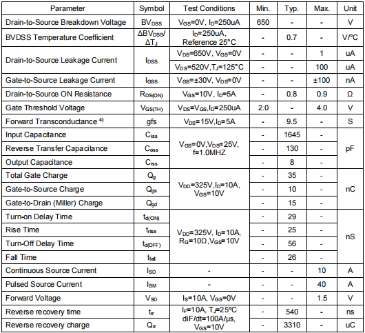 10a650v場效應管,65t540 650V,KNF6165C參數引腳圖-KIA MOS管