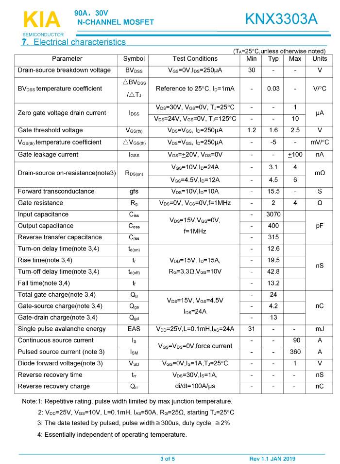 參數: ID(A): 90 BVDSS(V): 30 RDS(ON): 0.004 Qg(nC): 24 Package: DFN3*3、5*6